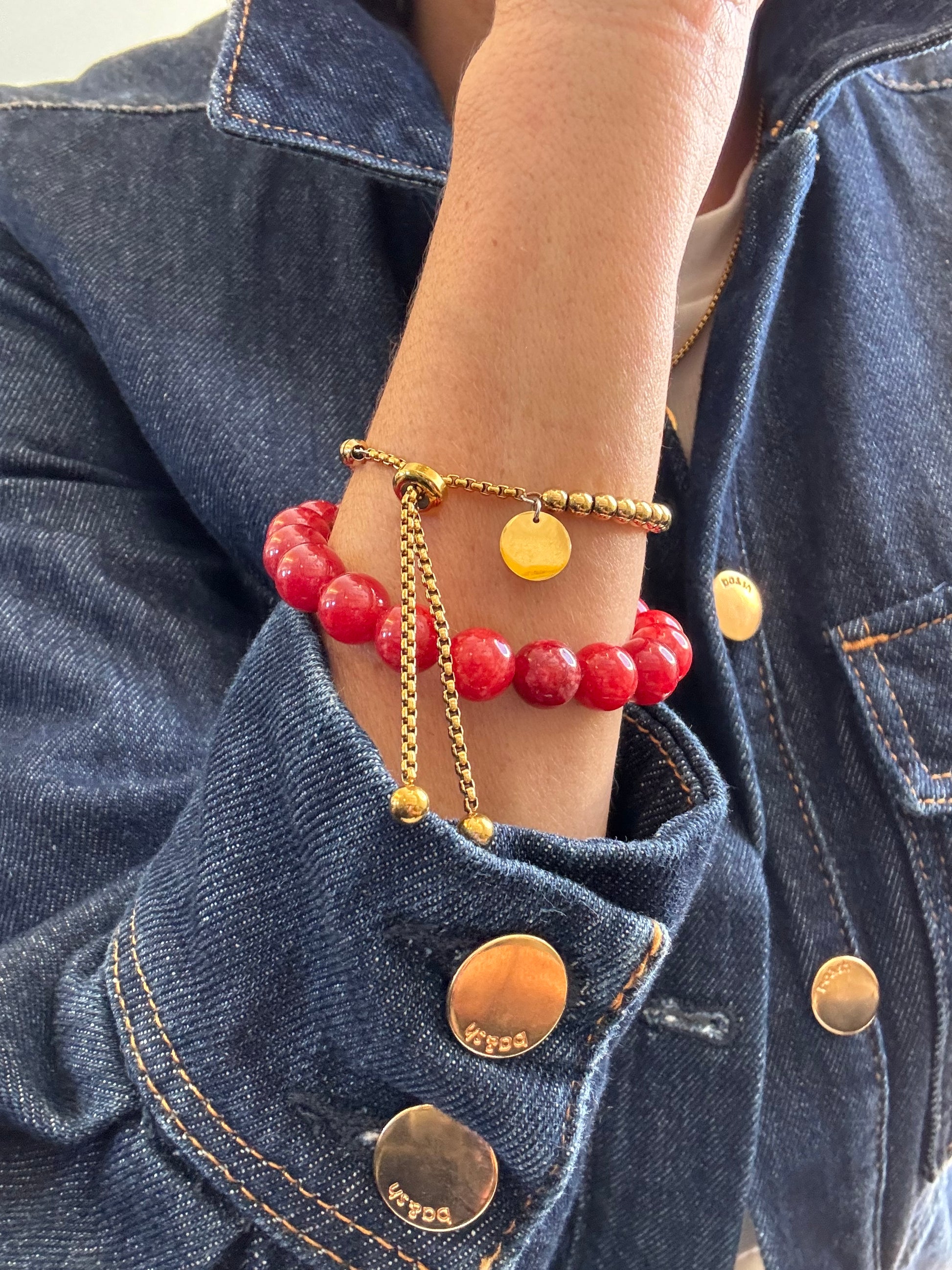 Echte Steine mit einem wasserresistenten goldenen Anhänger aus Edelstahl.